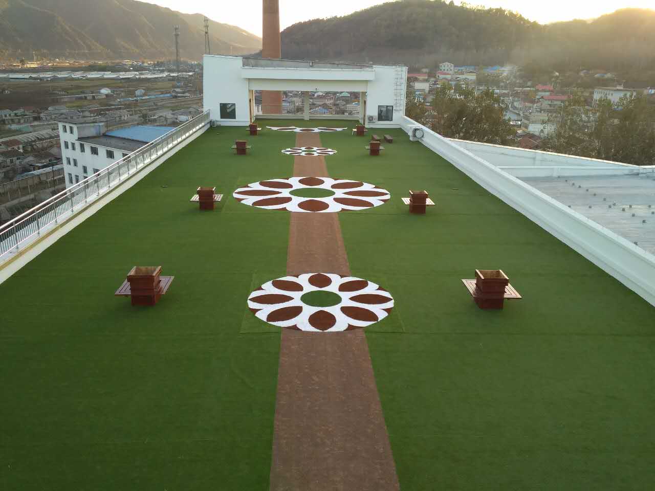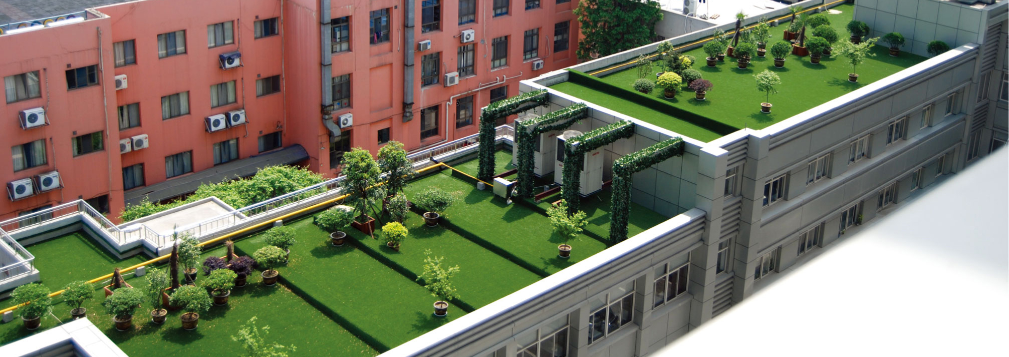 隨著城市的發(fā)展,人們對建筑的美觀度要求越來越高,不少的屋面、樓頂也有了綠化的需求,共創(chuàng)休閑草外觀仿天然,并且有卓越的抗老化性能,使用多年仍不易褪色、不粉末化,十分適用于屋頂綠化。