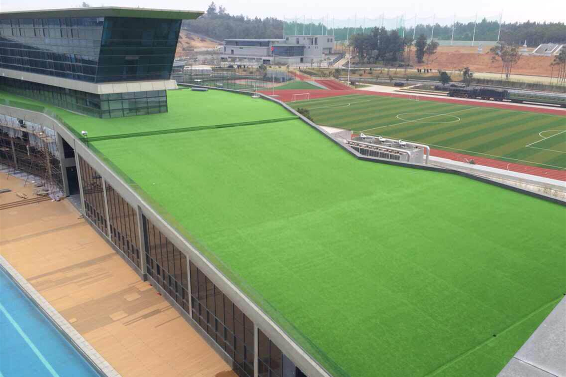 使用共創(chuàng)的人造草坪產(chǎn)品鋪設屋頂,既能夠美化空中環(huán)境,又可以再一定程度上起到建筑的隔熱效果。建設過程中,還可根據(jù)喜好在屋頂使用不同色彩的草坪搭配其他設施構(gòu)建簡單的休閑娛樂體驗區(qū)域,有效提升建筑的空間利用效率。